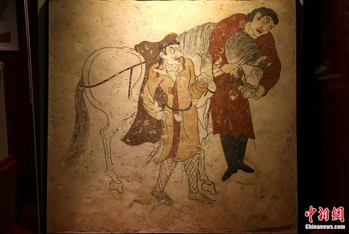 陜西歷史博物館展出的胡人牽馬圖壁畫。張遠(yuǎn) 攝