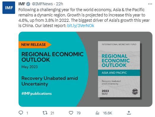 國(guó)際貨幣基金組織(IMF)5月2日發(fā)布《亞洲及太平洋地區(qū)經(jīng)濟(jì)展望報(bào)告》,圖片來(lái)源:國(guó)際貨幣基金組織社交媒體截圖