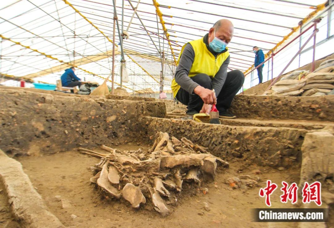 工作人員在河南南陽黃山遺址考古發(fā)掘現(xiàn)場進行清理作業(yè)。高嵩 攝