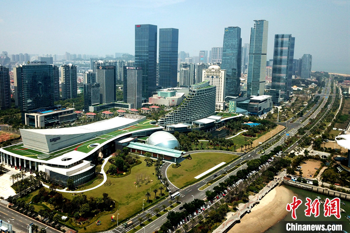 資料圖為航拍廈門國際會展及金融中心。(無人機(jī)照片) 中新社記者 王東明 攝