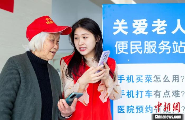 在江蘇省海安市大公鎮(zhèn)便民服務(wù)中心開設(shè)的老年人手機(jī)公益課堂上,志愿者指導(dǎo)老年人如何使用智能手機(jī)。翟慧勇 攝