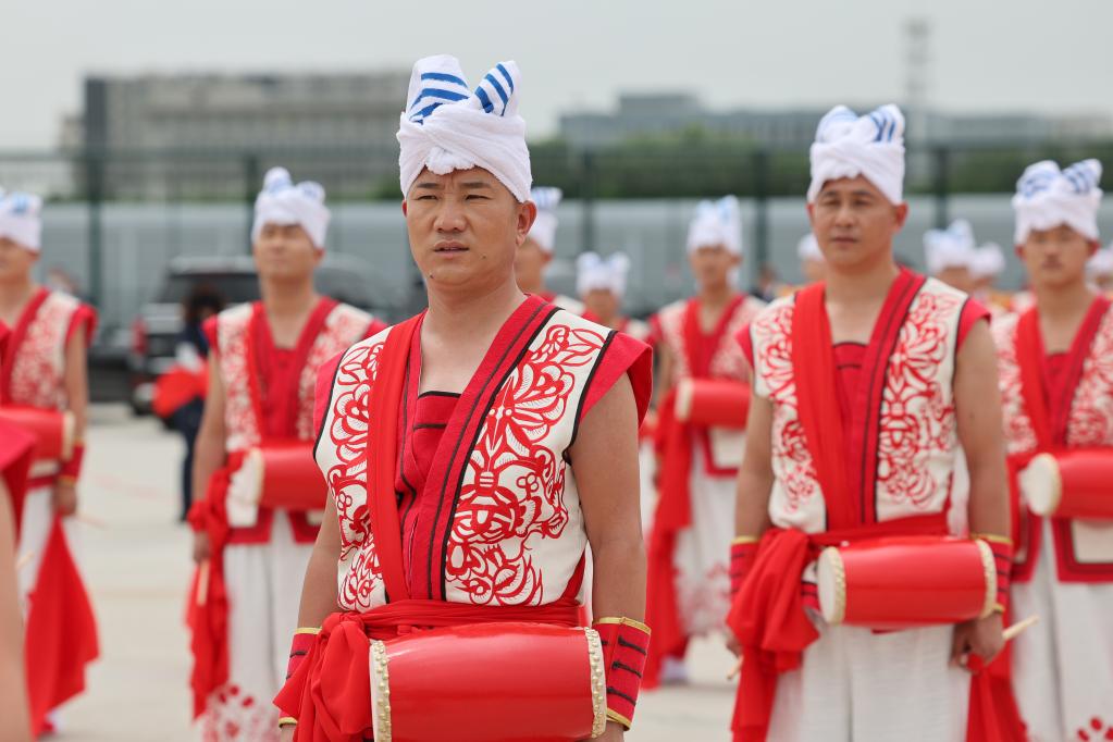 據(jù)悉,表演團(tuán)隊(duì)包括50名陜北腰鼓表演者、48名陜北秧歌表演者、20名現(xiàn)場(chǎng)演奏的樂手和72名手捧鮮花列隊(duì)歡迎的少年兒童。腰鼓和秧歌表演者是來自陜西北部榆林市的民間藝人和群眾文化工作者,少年兒童來自西安市的三所小學(xué)。現(xiàn)場(chǎng)音樂選用了帶有民間音樂元素的《春節(jié)序曲》的一部分。
