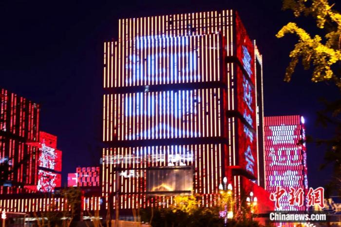 5月15日,陜西西安一處樓群亮起“喜迎峰會”燈光。5月18日至19日,中國—中亞峰會將在陜西西安舉行。張遠(yuǎn) 攝