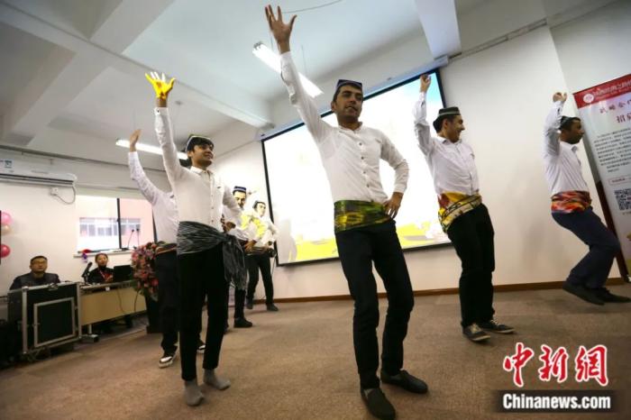 2016年,首屆“絲綢之路文化使者”特訓營在西安啟動。圖為來自烏茲別克斯坦的留學生在啟動儀式上表演舞蹈。張遠 攝