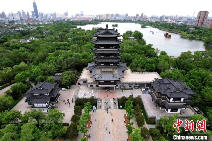 中新社濟(jì)南6月1日電 題:大明湖畔超然樓 半城湖色一樓璀璨