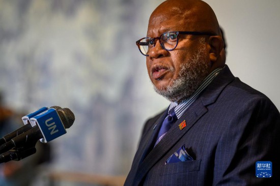 6月1日,在位于紐約的聯(lián)合國總部,特立尼達和多巴哥常駐聯(lián)合國代表丹尼斯·弗朗西斯當(dāng)選第78屆聯(lián)合國大會主席后向記者發(fā)表談話。新華社發(fā)(聯(lián)合國供圖/洛伊·費利普攝)
