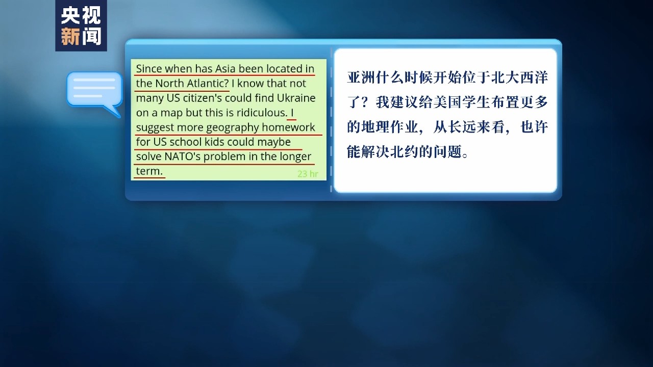 “亞洲什么時候開始位于北大西洋了?我建議給美國學(xué)生布置更多的地理作業(yè),從長遠(yuǎn)來看,也許能解決北約的問題。”