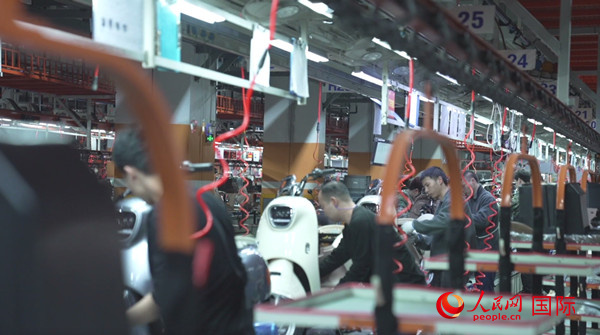 雅迪生產(chǎn)車(chē)間。人民網(wǎng) 彭昱凱 攝