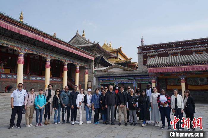 圖為外國記者團在塔爾寺合影?!●R銘言 攝
