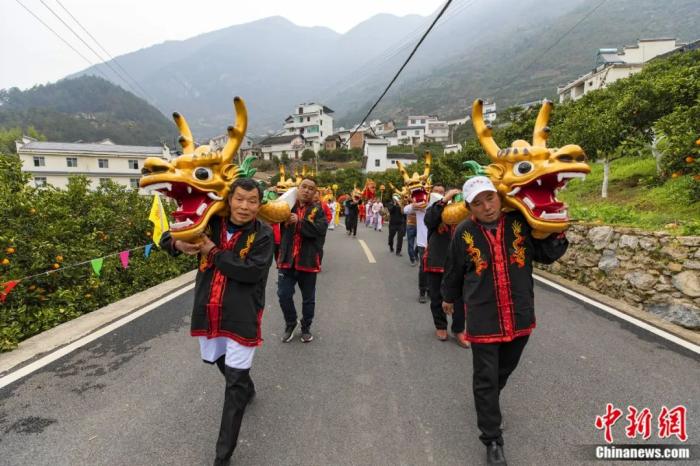 2022年3月4日,在秭歸縣歸州鎮(zhèn)萬古寺村,當地村民抬龍頭下水。聶爽 攝