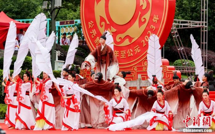 2023年6月21日,“中國端午 詩意宜昌”2023屈原故里端午文化節(jié)在湖北省宜昌市秭歸縣屈原故里文化旅游區(qū)盛大開幕。圖為開幕式上文藝表演舞蹈《屈原》。張暢 攝