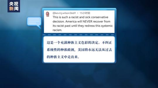 還有不少網(wǎng)友認(rèn)為,最高法院的這一裁定充斥著濃厚的“種族主義”色彩,“不糾正系統(tǒng)性的種族歧視,美國將永遠(yuǎn)無法從過去的種族主義中走出來?!?/p>