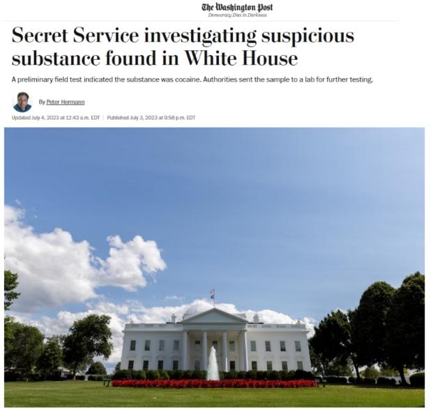 中新網(wǎng)7月4日電 據(jù)美國《華盛頓郵報(bào)》4日?qǐng)?bào)道,當(dāng)?shù)貢r(shí)間2日晚,美國特勤局在白宮內(nèi)發(fā)現(xiàn)了一些可疑白色粉末狀物質(zhì),經(jīng)初步鑒定,其中含有可卡因成分。