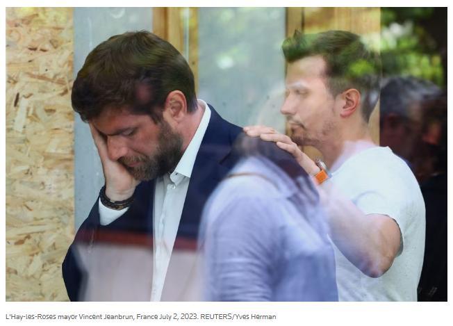 當(dāng)?shù)貢r間7月2日,家中遭襲擊后的法國拉伊萊羅斯市市長讓布蘭。圖片來源:路透社報道截圖