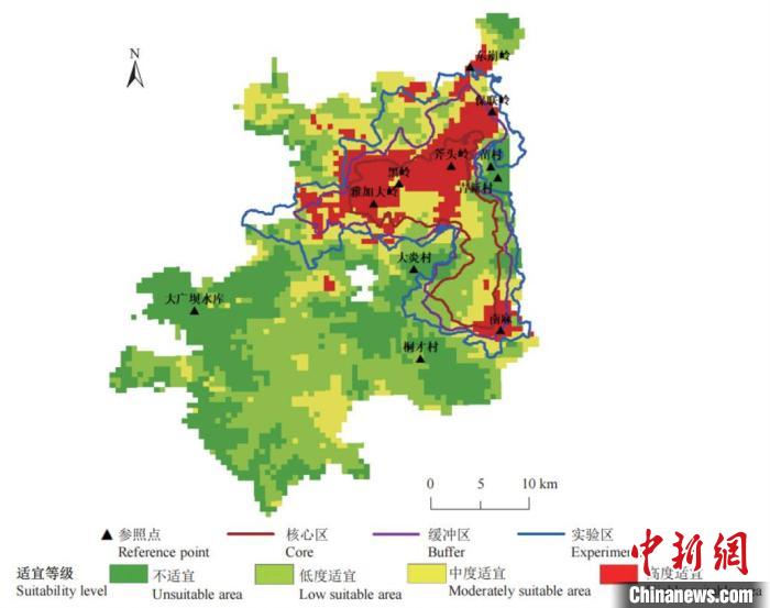 圖為科學(xué)家繪制出的海南霸王嶺一帶適合海南長(zhǎng)臂猿棲息的區(qū)位圖。(許涵供圖)