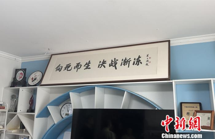 蔡磊的辦公室內有一塊“向死而生 決戰(zhàn)漸凍”的牌匾 記者 吳家駒 攝