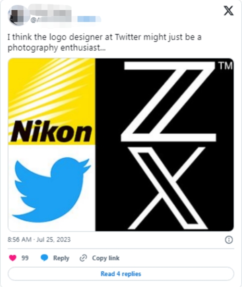 此外,新標志“X”的創(chuàng)意也引發(fā)網(wǎng)友質(zhì)疑,認為其與尼康、富士膠片等相機公司使用的標志存在相似之處,暗示推特抄襲。
