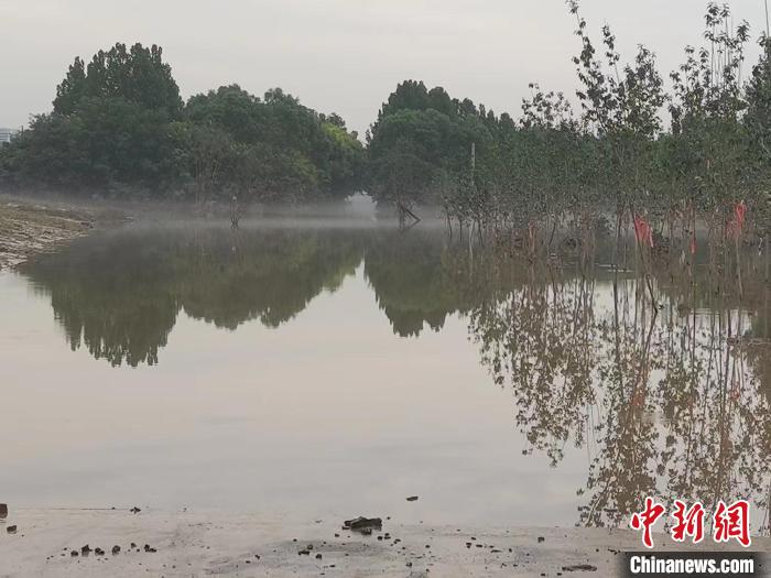 8月5日,前往中圖網(wǎng)倉儲(chǔ)中心的一條道路依然有大量積水,行人無法通行。 中新社記者 陳林 攝