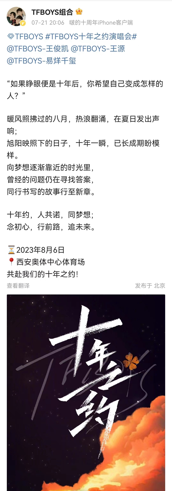 TFBOYS十年之約演唱會(huì)倡議。來(lái)源:TFBOYS官微。