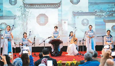 身著中國傳統(tǒng)服飾,景德鎮(zhèn)瓷樂隊的姑娘們自信地登上舞臺,用瓷甌、瓷二胡、瓷琵琶、瓷笛,帶來令人耳目一新的瓷樂合奏,為當?shù)赜^眾獻上一場極具中國傳統(tǒng)意蘊的音畫大賞。