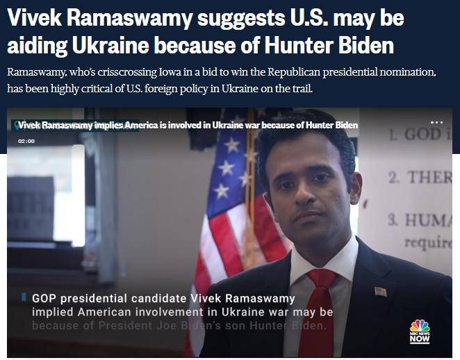 “支付給亨特·拜登的款項(xiàng)是否存在腐敗行為?絕對(duì)有。這和我們對(duì)烏克蘭的態(tài)度有什么關(guān)系嗎?我認(rèn)為這直接影響美國(guó)對(duì)烏立場(chǎng)。”拉馬斯瓦米說道。