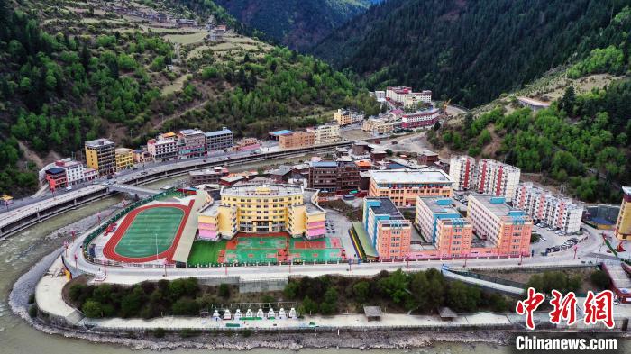 圖為四川阿壩州壤塘縣寄宿制小學(xué)(無人機拍攝)?!≈行律缬浾?安源 攝