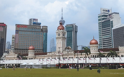 馬來西亞吉隆坡獨(dú)立廣場上,人們駐足拍照。