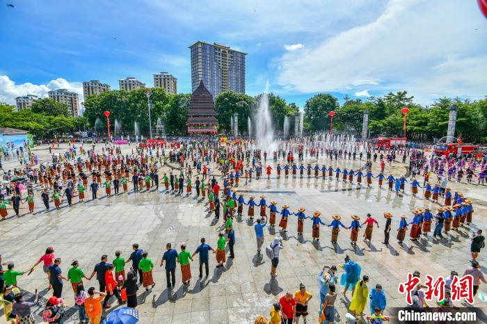 嬉水節(jié)活動現(xiàn)場,臺灣同胞與當(dāng)?shù)孛癖娨坏垒d歌載舞歡度“七夕”。 駱云飛 攝