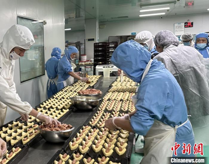 30年來(lái),羅莎蛋糕已從湖南走向全中國(guó),擁有300多家門(mén)店和2000多個(gè)員工。圖為員工在工廠(chǎng)做面包?!⒙?攝