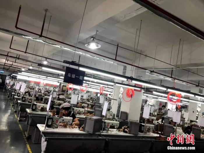 圖為工人們?cè)诠S制作毛絨玩具。受訪者供圖