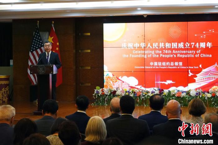 中國駐紐約總領(lǐng)事黃屏在講話中表示,74年來,中國大地發(fā)生了翻天覆地的變化,創(chuàng)造了世所罕見的經(jīng)濟(jì)快速發(fā)展和社會長期穩(wěn)定兩大奇跡。今年是改革開放45周年。改革開放不僅深刻改變了中國,也深刻影響了世界。當(dāng)前中國已邁入新時代。新起點上的中國,將繼續(xù)以高質(zhì)量發(fā)展和高水平開放給各國提供新的機(jī)遇,給變亂交織的世界注入寶貴的信心和力量。
