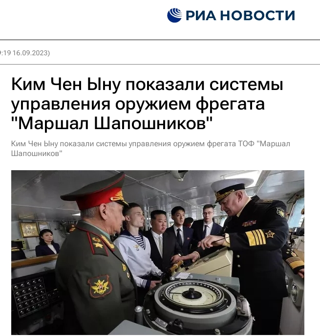 中新網(wǎng)9月16日電 綜合俄媒報(bào)道,當(dāng)?shù)貢r(shí)間16日,朝鮮最高領(lǐng)導(dǎo)人金正恩抵達(dá)符拉迪沃斯托克市克涅維奇機(jī)場(chǎng),俄國防部長紹伊古在機(jī)場(chǎng)向金正恩展示了圖-160戰(zhàn)略轟炸機(jī)等戰(zhàn)機(jī)。隨后,一行人登上俄太平洋艦隊(duì)“沙波什尼科夫元帥”號(hào)護(hù)衛(wèi)艦。