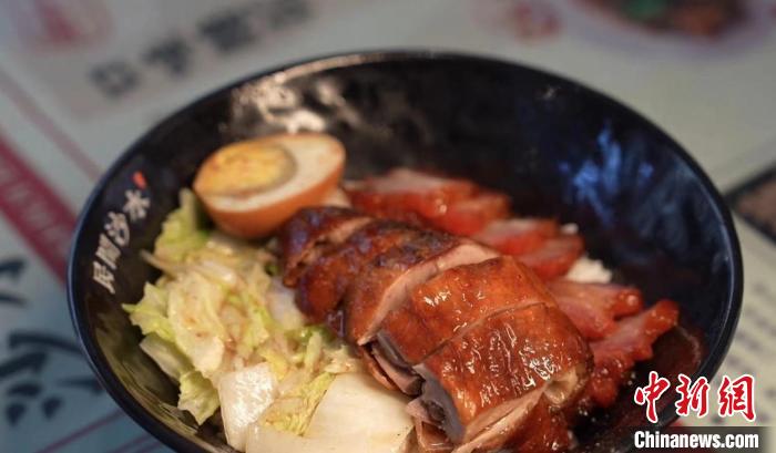 店內(nèi)靠街邊一角,港式燒臘明檔會(huì)出品咸蛋叉燒、燒鵝等港式產(chǎn)品。港式燒臘加長(zhǎng)沙米粉的組合,不僅讓許多長(zhǎng)沙人贊不絕口,也吸引眾多在湘生活的港人聞香而來。