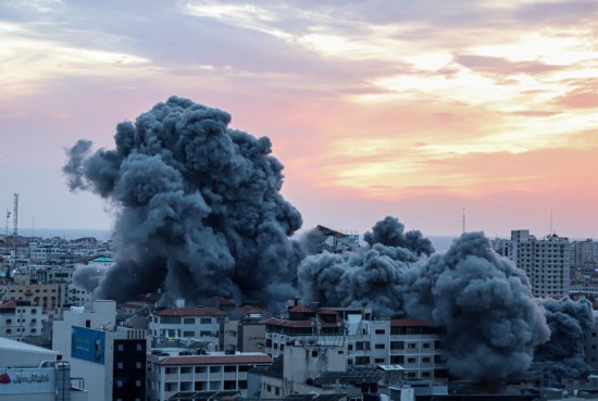 這是10月7日在加沙城拍攝的以色列軍隊空襲后濃煙滾滾的場面。(新華社發(fā),里澤克·阿卜杜勒賈瓦德攝)
