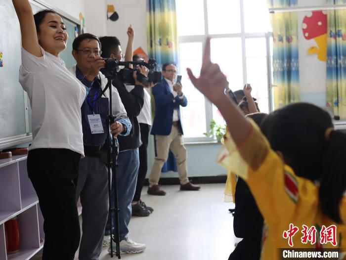 近日,泰國記者協(xié)會主席孟孔(左二)走進(jìn)喀什地區(qū)疏附縣吾庫薩克鎮(zhèn)七村學(xué)校參訪?!≈行律缬浾?薄雯雯 攝