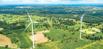 圖為猜也蓬電廠的風機(無人機拍攝于10月5日)。