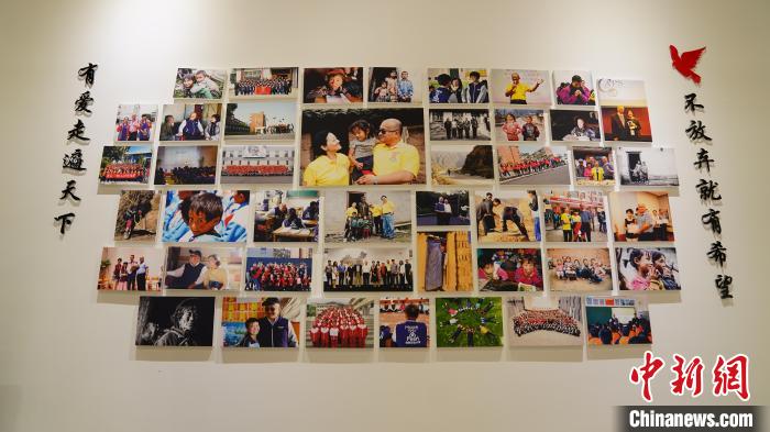 在秦榮華家中的墻上,掛著他過去30多年來在大陸各地走訪、參與公益、推動兩岸交流的照片?!≈行律缬浾?楊程晨 攝