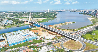 近年來,中國企業(yè)為提升非洲基礎設施水平、加速互聯(lián)互通和一體化進程、促進當?shù)亟?jīng)濟社會發(fā)展和民生改善等作出了積極貢獻。圖為中國路橋工程有限責任公司承建的科特迪瓦阿比讓科科迪斜拉橋項目。