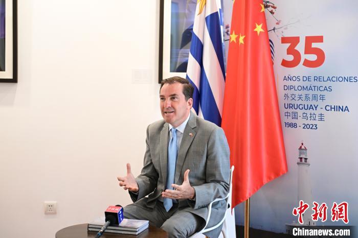 近日,烏拉圭駐華大使費爾南多·盧格里斯在北京接受中新社專訪?!≈行律缬浾?田雨昊 攝