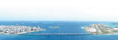 在馬爾代夫航拍的連接首都馬累和機(jī)場島的中馬友誼大橋。