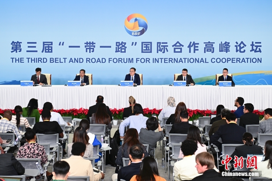 10月16日,第三屆“一帶一路”國(guó)際合作高峰論壇新聞中心在位于北京的國(guó)家會(huì)議中心舉行首場(chǎng)吹風(fēng)會(huì),邀請(qǐng)自然資源部國(guó)際合作司和相關(guān)單位負(fù)責(zé)人介紹有關(guān)情況,并回答記者提問。圖為吹風(fēng)會(huì)現(xiàn)場(chǎng)?!≈行律缬浾?田雨昊 攝