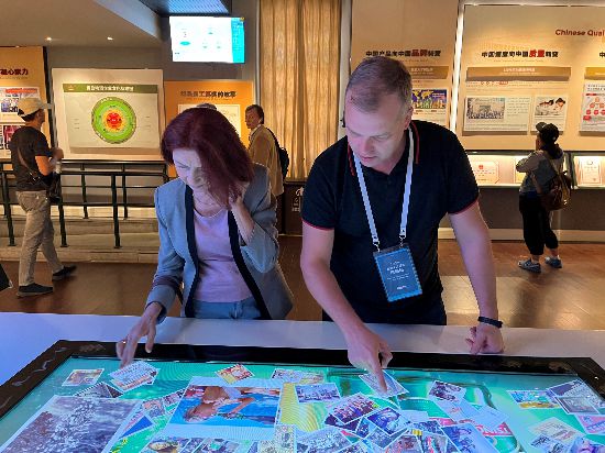 考察團(tuán)成員體驗(yàn)青啤博物館互動(dòng)項(xiàng)目