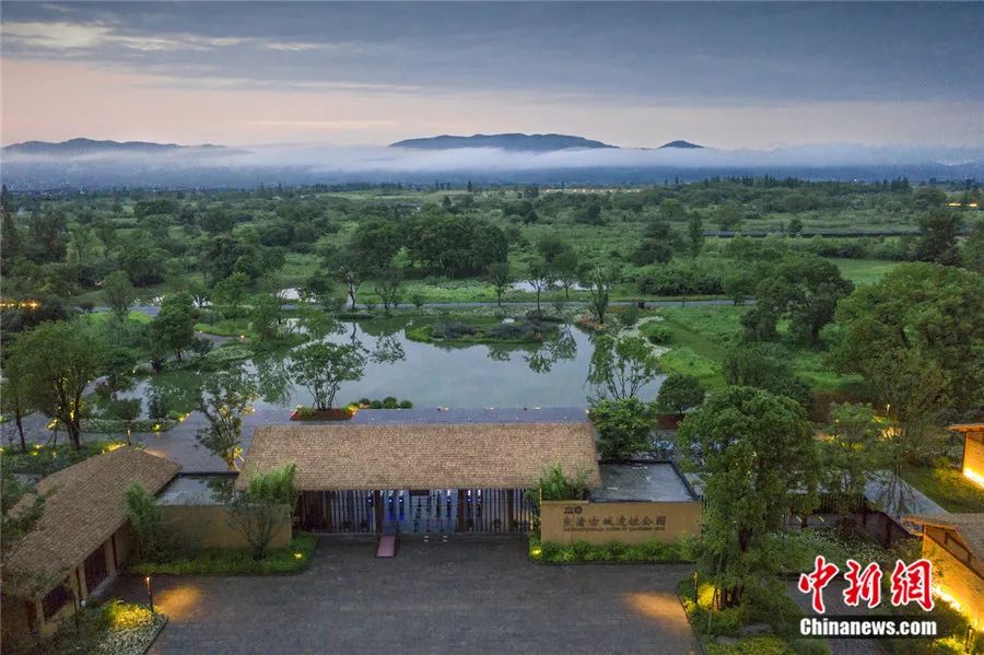 良渚古城遺址公園(無人機(jī)照片)。中新社發(fā) 杭州良渚遺址管理區(qū)管理委員會 供圖