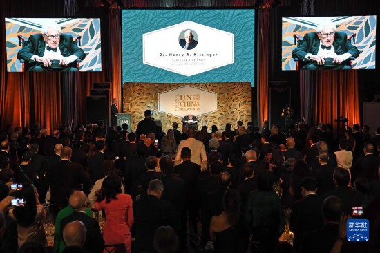 10月24日,美國前國務卿基辛格(中)出席在紐約舉行的美中關系全國委員會年度頒獎晚宴。新華社記者李睿攝