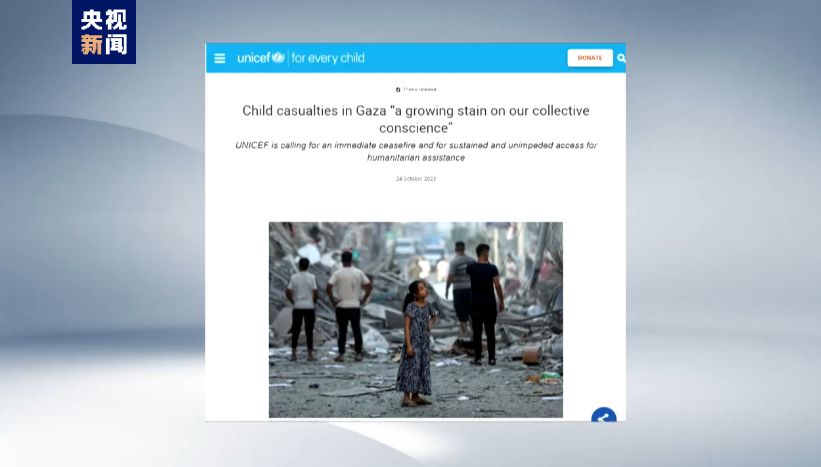 聯(lián)合國兒童基金會呼吁沖突各方盡快?;?、允許人道主義救援物資進入加沙。