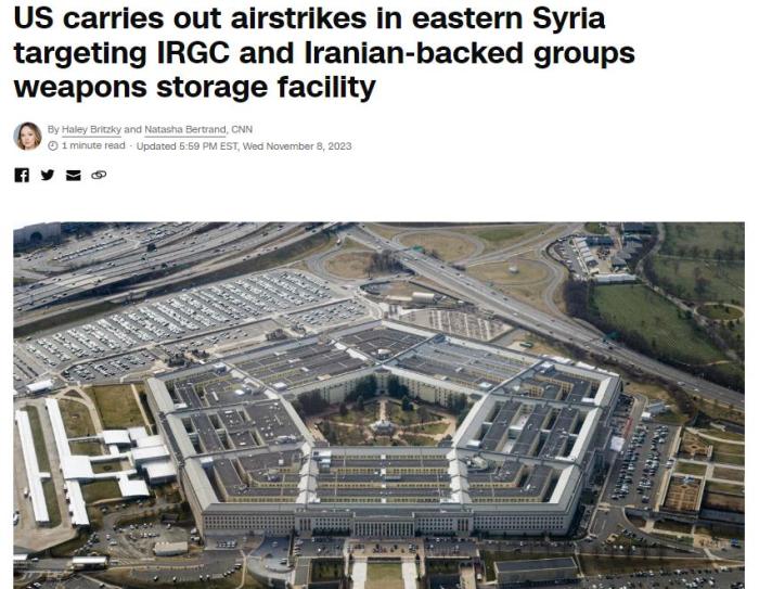 中新網(wǎng)11月9日電 據(jù)美國有線電視新聞網(wǎng)(CNN)報(bào)道,五角大樓當(dāng)?shù)貢r(shí)間8日宣布,美軍對(duì)伊朗伊斯蘭革命衛(wèi)隊(duì)(IRGC)及其附屬組織在敘利亞東部境內(nèi)所使用的武器儲(chǔ)存設(shè)施實(shí)施了空襲。