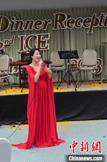 廣州新華學(xué)院音樂老師邱思暉在晚會上表演節(jié)目。受訪者供圖