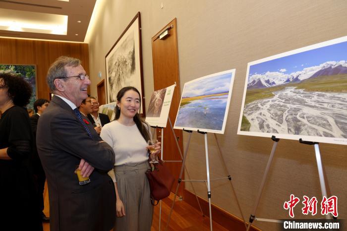當(dāng)?shù)貢r(shí)間11月8日,中國(guó)駐加拿大使館舉辦國(guó)家公園圖片展暨招待會(huì)。圖為與會(huì)嘉賓觀看三江源國(guó)家公園照片。 中新社記者 余瑞冬 攝