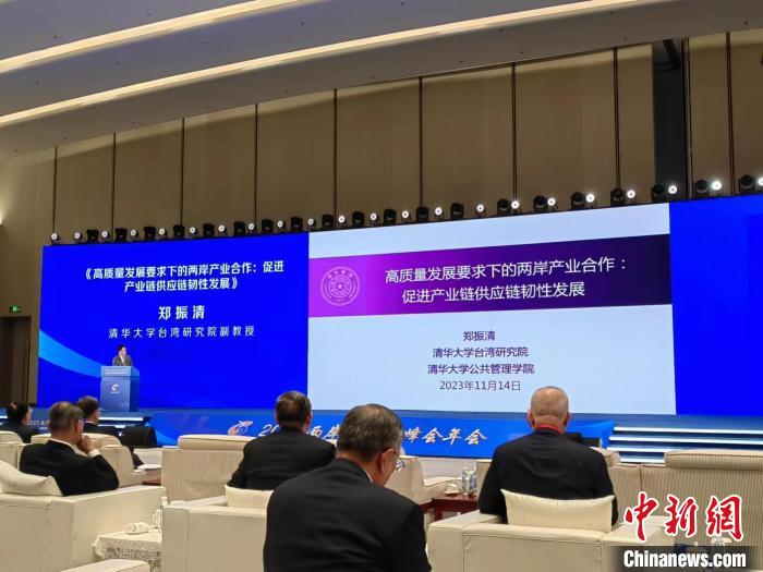 11月14日,清華大學公共管理學院、臺灣研究院副教授鄭振清在兩岸企業(yè)家峰會10周年年會上作主題演講。(受訪者供圖)