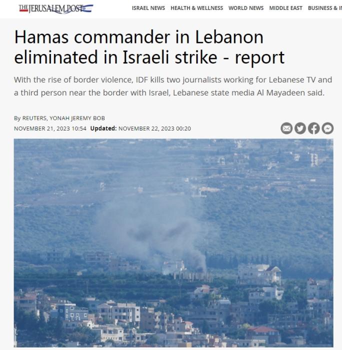 報(bào)道還稱,當(dāng)天早些時(shí)候,以軍對黎巴嫩的攻擊還導(dǎo)致兩名為黎巴嫩電視臺(tái)工作的記者以及在黎以邊境的一名工作人員身亡。